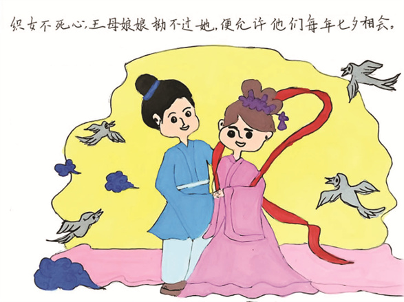 神奇画笔 画里的浪漫传说 在浩瀚的星空里,有两颗隔河相望的星星,它们藏着一个流传了千百年的浪漫故事——那就是牛郎和织女的传说。全椒县第二实验小学五(9)班的学生成新耀用色彩鲜艳的连环画,讲述着这份跨越银河的浪漫,一起来欣赏本期佳作吧!