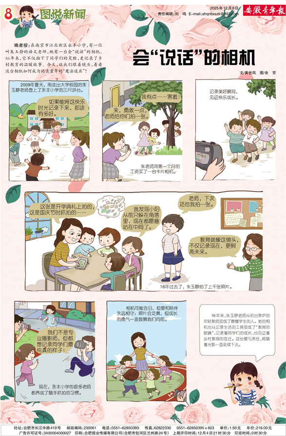 会“说话”的相机 文/黄世凤 图/余 芳 编者按:在南京市江北新区永丰小学,有一位叫朱玉静的语文老师,她有一台会“说话”的相机。16年来,它不仅拍下了同学们的笑脸,更记录了乡村教育的温暖故事。今天,让我们跟着镜头,看看这台相机如何成为记录童年的“魔法道具”!