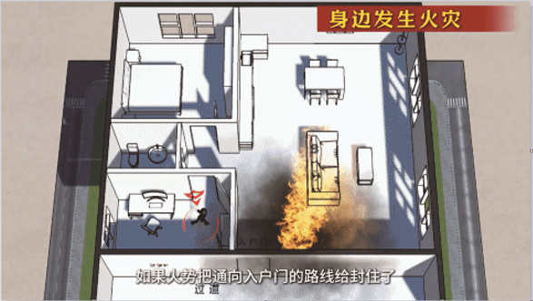 这种情况是指你家楼下住户或楼道、大厅电梯井等处发生火灾,比较危险,绝大部分居民住宅火灾亡人都是这种情形。如果浓烟已经充斥走廊和楼梯间,请退回家里关门堵缝等待救援,绝不能盲目跳楼。如果走廊和楼梯间没有浓烟,可以迅速逃离。