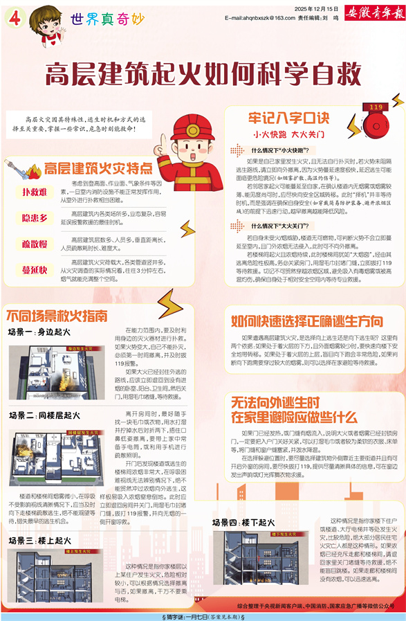 高层火灾因其特殊性,逃生时机和方式的选择至关重要,掌握一些常识,危急时刻能救命!
