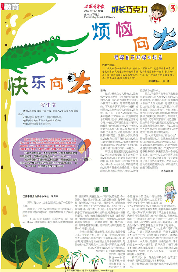 《安徽青年报·学生周刊》励志启智,开阔视野,净化心灵,陶冶情操,参与互动,集新闻性、知识性、趣味性、互动性为一体,是小学生成长的良师益友、参与互动的平台、沟通老师家长的纽带。