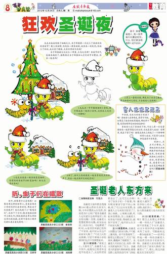 孩子,我是圣诞老人,有一份圣诞大礼要送给你。什么,你们家没有烟囱?还不去买! 狂欢圣诞夜 1.毛毛虫一节节圆溜溜的小身段,像不像接在一起的小球呢,这些球上还长了一对脚呢!
