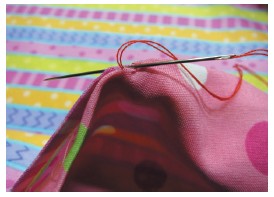 7.缝好后将两端的角翻折到背面的中间缝合并装饰。