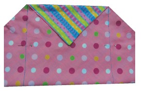 4.如图折三角,并画出1.5厘米的缝纫线,并缝合好。