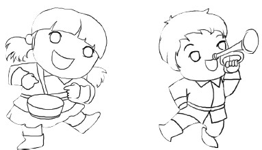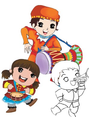 穿上过年的新衣,准备好装红包的口袋,开开心心去拜年喽! 漫迷大课堂·新年美术班 锣鼓一声春节到 1.女孩的腰鼓,男孩的唢呐,你们准备好了吗?