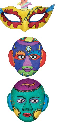 蒙面侠出没 比起欧冠玉的灯,合肥市青年路小学的一群蒙面侠可是毫不掩饰对色彩的喜爱。有什么比画脸谱和面具更让我们兴奋的呢,当别人炫耀自己的新衣服或者新玩具的时候,我们戴着自己画的面具和脸谱,过足了蒙面侠的瘾。不仅如此,他们还给报纸前的你出考题了,请从他们的话中找出对应他们的脸谱或者面具,你能行吗? 一(1)班郑韦琪:“为什么人类的眉毛都是一种颜色呢,为什么不能是两种呢?” 二(3)班陈金鑫(xīn):“脸上两块黄色的斑,才像是地球人!” 三(3)班杨元懿(yì):“到底是蛇像树枝,还是树枝像蛇呢?”