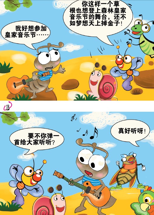 漫画故事会 和梦想肩并肩 □程 筠/编 余 芳/绘 森林皇家音乐节即将开演,这是森林里最隆重、最气派、最高档次的音乐盛会。一直梦想参加皇家音乐节的小蚂蚁,把这个闪耀的舞台看成梦想开始的地方,它一心希望能受邀参加此次盛大的音乐节。小蚂蚁能够如愿以偿,放飞梦想吗?