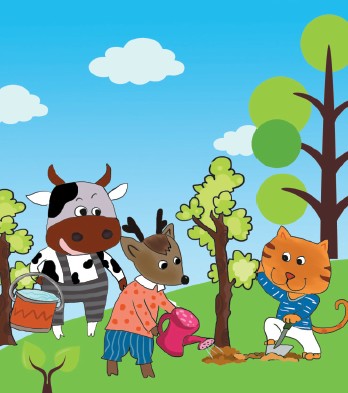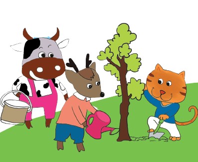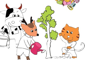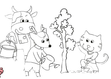 4.奶牛力气大,负责提水;狐狸手巧,负责浇水……看,这合作多么快乐。你呢,要一起来分工吗,那就快快加入吧!