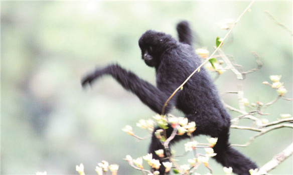 白掌长臂猿在我国的分布区很小,直到1967年,中国科学家才第一次记录到白掌长臂猿。