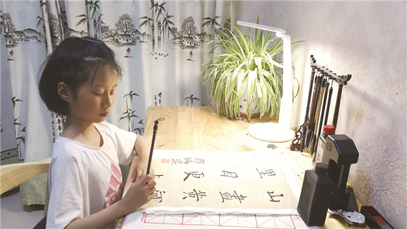 她多才多艺,爱好广泛,从小就学习中国舞、绘画、剪纸等,并热爱各种体育运动。曾获得全国语言文字大赛三等奖、安徽省少儿舞蹈大赛金奖、市级征文比赛一等奖多次、市级科技创新大赛二等奖、县级电脑制作活动绘画和电子板报分别获得一等奖多次,在学校举办的各种比赛中均获得较好的奖次,通过参与各种活动,锻炼了她的身心。她跟社团的老师学习书法才几个月的时间,可她的进步却是一日千里,她从刚开始的基本笔画都写不好,到现在能写出多幅工整、漂亮、有韵味的书法作品,很多人只看到她的进步,却不知道她为了练好书法而付出的艰辛和努力,别人写一遍,她就写五遍、十遍,她首先尽量记下字帖中字的笔画和结构,只要有一丁点时间就在空气中书空,揣摩笔画的力度和字的整体间架结构,虽然练习书法时间不长,可是她练书法用的纸堆起来都有她的半人高,书法等学习活动磨练了她的意志,陶冶了她的情操,她也在各项学习活动中收获了友谊。“勤能补拙是良训,一分辛苦一分才。”正是她最生动的写照,在学校,她是艺术骨干,只要有什么活动,就一定有她的存在。此外,她还喜欢看书,不论是文学历史类还是科学自然类。她通过读书开阔了视野,培养了乐观积极的生活态度和坚强的意志。她还喜欢把自己读过的书和最喜欢的故事讲给家人和同学听,不仅开阔了同学们的眼界,还增进了同学间的友谊。