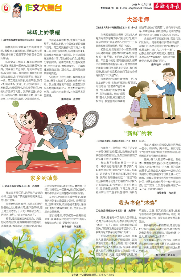 《安徽青年报·学生周刊》励志启智,开阔视野,净化心灵,陶冶情操,参与互动,集新闻性、知识性、趣味性、互动性为一体,是小学生成长的良师益友、参与互动的平台、沟通老师家长的纽带。