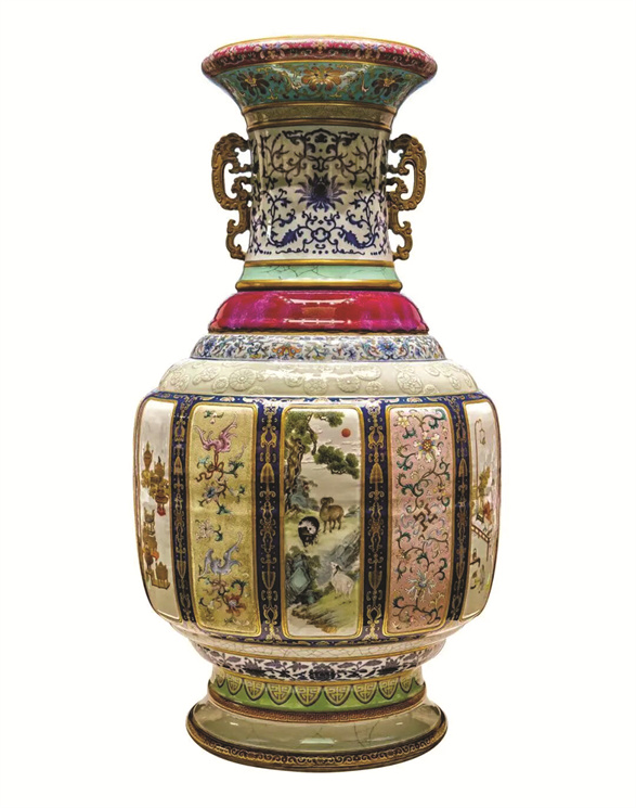 瓷瓶高86.4厘米、口径27.4厘米,瓶身上所施不同颜色的釉、彩多达17种。这些釉、彩的烧制温度不同,只有在陶瓷烧造技艺发展鼎盛时期才能制成。