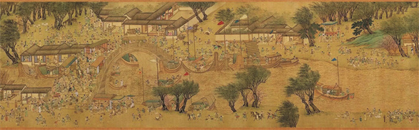 《清明上河图》是北宋画家张择端的传世名作,长528厘米,宽24.8厘米,描绘了北宋都城汴京从城郊到汴河两岸,再到城中市井的真实面貌,再现了游人如织、热闹非凡的景象。