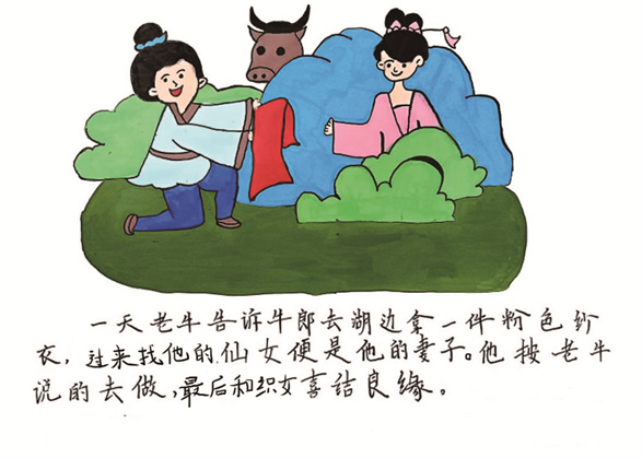 神奇画笔 画里的浪漫传说 在浩瀚的星空里,有两颗隔河相望的星星,它们藏着一个流传了千百年的浪漫故事——那就是牛郎和织女的传说。全椒县第二实验小学五(9)班的学生成新耀用色彩鲜艳的连环画,讲述着这份跨越银河的浪漫,一起来欣赏本期佳作吧!