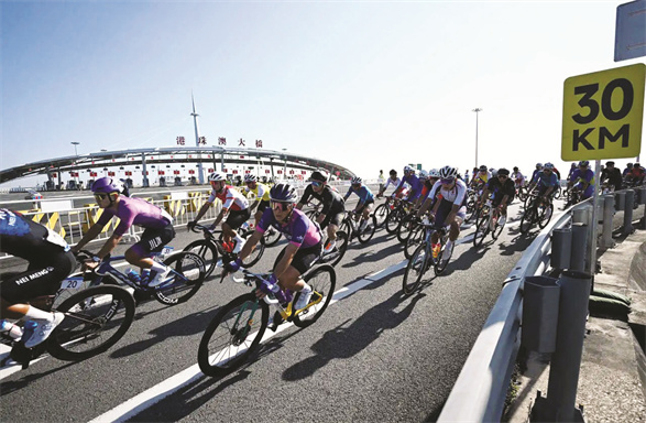 参赛选手经过港珠澳大桥闸口 图源:新华社