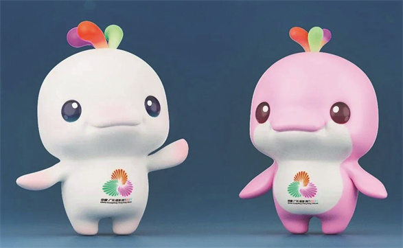 十五运会吉祥物“喜洋洋”“乐融融”以中华白海豚为原型,设计上融入了“果冻啫喱状浪花”“多肉质感手臂”等元素,旨在传递亲和力与萌态。