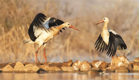 白鹳(ɡuàn)是一种大型涉禽,分布于欧洲、西亚大部分地区及北非等地区,秋天飞往非洲撒哈拉以南的热带草原和湿地越冬,一年的迁徙距离可达上万千米。在迁徙途中,白鹳需要跨越辽阔干旱的撒哈拉沙漠,翻越炎热而少有补给的中东高原地带,并借助热气流来完成旅行。