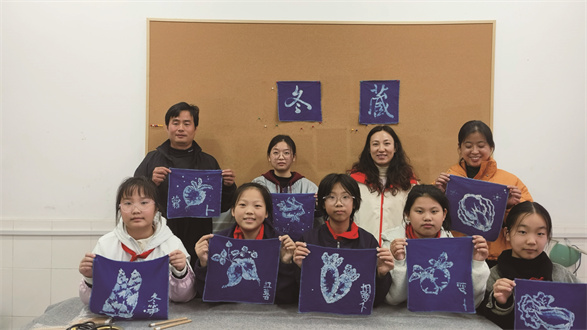 最近,和县历阳镇第三小学的同学们体验了有趣的蜡染工艺。他们先用蜡刀蘸融化的蜂蜡,在白布上画出枯枝、寒梅等冬日图案,这时,蜂蜡像“小盾牌”,挡住染料,保护布上的白色部分。接着,布被同学们浸入蓝靛染缸,在低温中慢慢被染成了深蓝色。最后,同学们刮掉蜡层,蓝白花纹就出现了。此次蜡染活动让同学们亲身体验了非遗记忆的独特魅力,还搭建了传承与传播中国传统文化的桥梁。