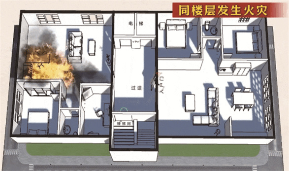 这种情况是指你家楼下住户或楼道、大厅电梯井等处发生火灾,比较危险,绝大部分居民住宅火灾亡人都是这种情形。如果浓烟已经充斥走廊和楼梯间,请退回家里关门堵缝等待救援,绝不能盲目跳楼。如果走廊和楼梯间没有浓烟,可以迅速逃离。